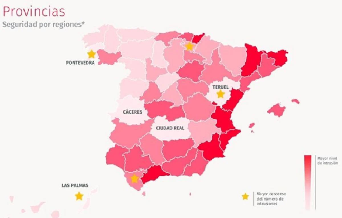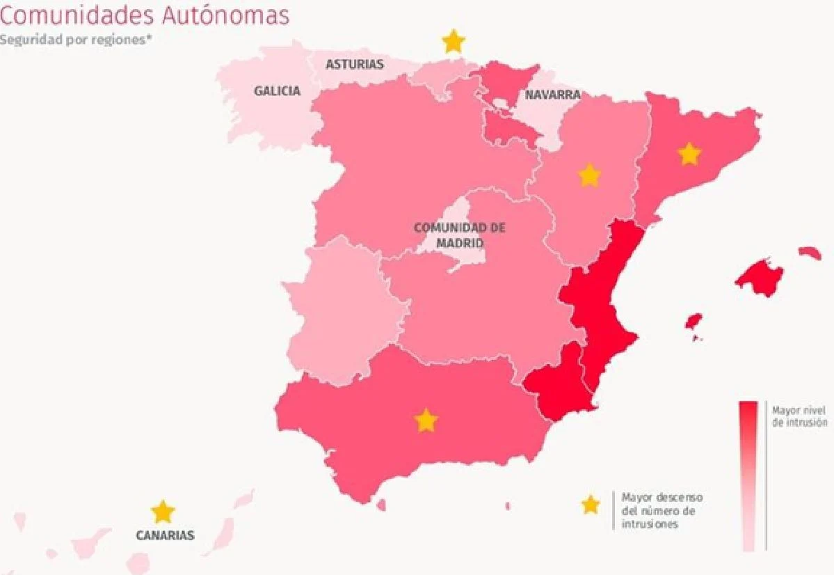 Aunque Castilla y León y Extremadura salen este año del top 5 de comunidades autónomas más seguras, mantienen unos bajos niveles de intrusión.