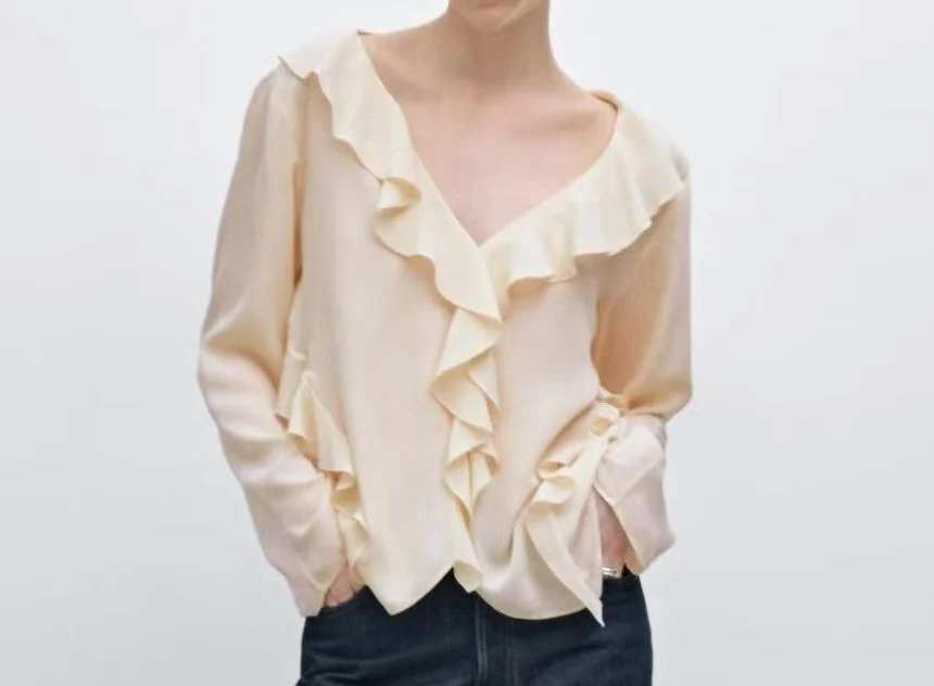 63. Blusa con volantes y bajo asimétrico: estilo sin esfuerzo
