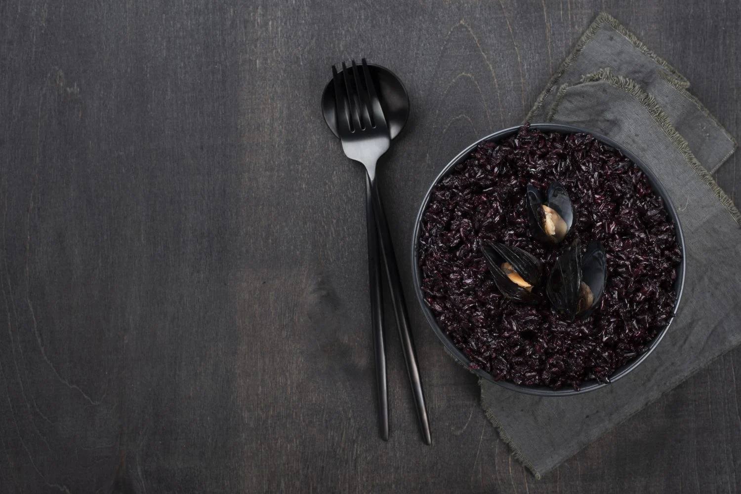 El arroz negro es un plato típico de la cocina mediterránea, especialmente en las regiones costeras de España, como la Comunidad Valenciana y Cataluña. Su característica más distintiva es su color oscuro, que se debe al uso de tinta de calamar o pulpo, un ingrediente que realza el sabor a mar del plato.