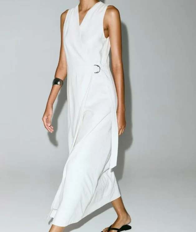 Este vestido blanco cruzado es la definición de elegancia y frescura. Está confeccionado en mezcla de lino, con una caída espectacular y un diseño que estiliza cualquier silueta. Su aire sofisticado lo convierte en una apuesta segura para cualquier evento de verano. Una prenda clave que nunca pasará de moda.