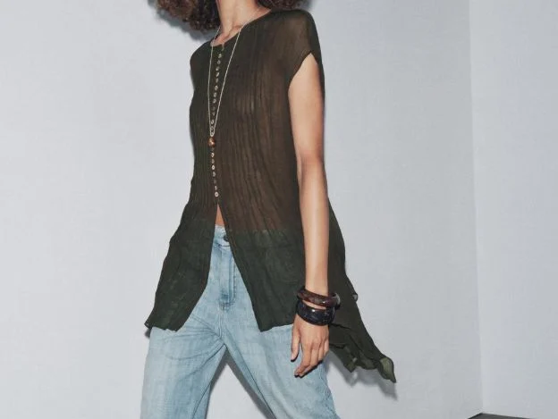 Las transparencias han vuelto, pero no de forma provocadora sino sutil. Zara propone una camisa semitransparente que se alinea con esta tendencia y que puede transformarse en la pieza clave de un look diario o de una salida nocturna.