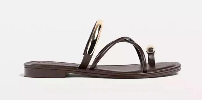 Estas sandalias son una de esas compras inteligentes que no fallan. Su diseño minimalista y su detalle metálico en el empeine las hace fáciles de combinar, ya sea con vestidos, pantalones de lino o faldas midi.
