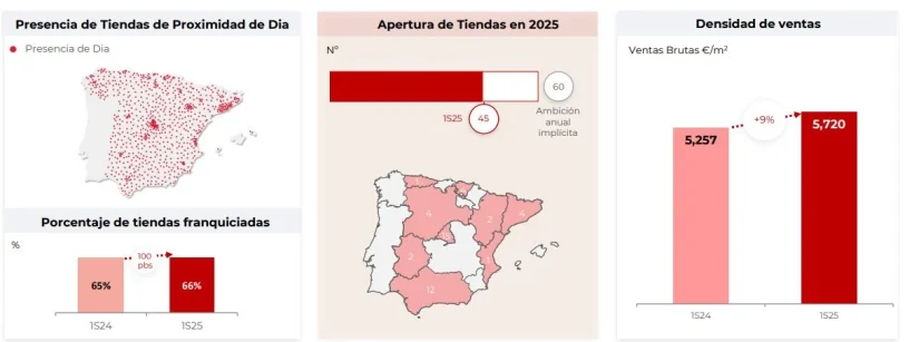 En este contexto, la cadena de distribución española, Dia que, cuenta con un total de 2.329 tiendas, y entre el 65% y el 80% son franquicias. En lo que va de este 2025, es decir, en este primer semestre, ha abierto un total de 45 tiendas, y sigue a la espera de encontrar más locales que les cuadren para cumplir con las 60 tiendas anuales.