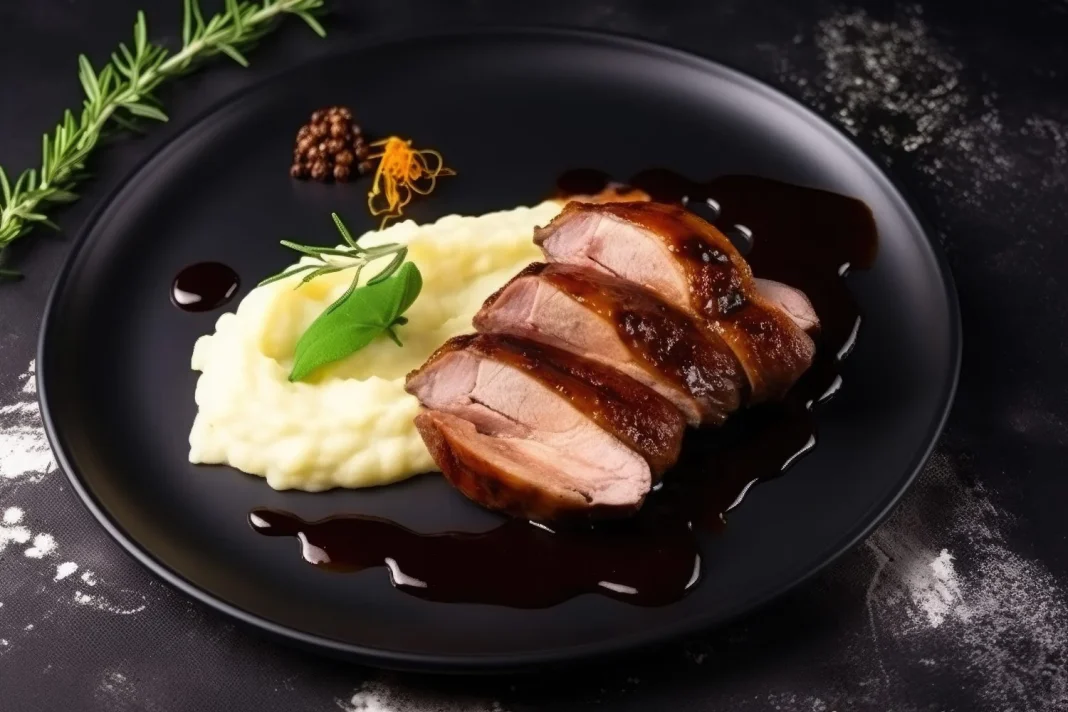 - Vino blanco ligeramente dulce o rosado para equilibrar la riqueza del pato.