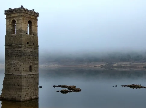Imagínalo. Un paisaje de aguas azules y pinares frondosos, el corazón verde de Soria. Y en medio de esa postal idílica, emergiendo de la orilla como el esqueleto de un leviatán, los restos de una vida pasada. Eso es lo que ofrece la visión de La Muedra durante los meses de sequía. No es solo un conjunto de ruinas; es el testimonio mudo de una comunidad sacrificada en el altar del progreso. El silencio aquí es diferente, está cargado de historias no contadas, de risas infantiles y de despedidas forzosas. De repente, la torre de su iglesia se yergue como un faro de la memoria, desafiando al agua y al olvido como el último vestigio orgulloso de la historia de un pueblo entero, negándose a desaparecer por completo del mapa y del recuerdo.