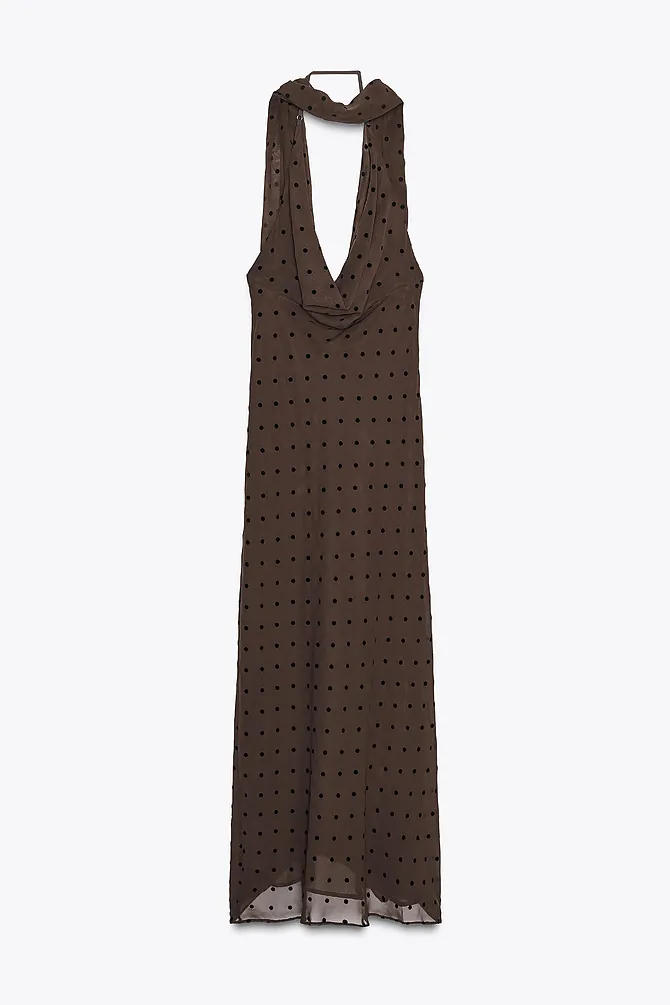 El escote recto, los tirantes finos y la textura crochet en el cuerpo aportan ese aire bohemio que tanto se lleva en verano. Además, es un vestido sumamente versátil: puede lucirse con sandalias planas durante el día o con cuñas para un evento nocturno. Zara ha sabido conjugar comodidad y estilo en una misma prenda.