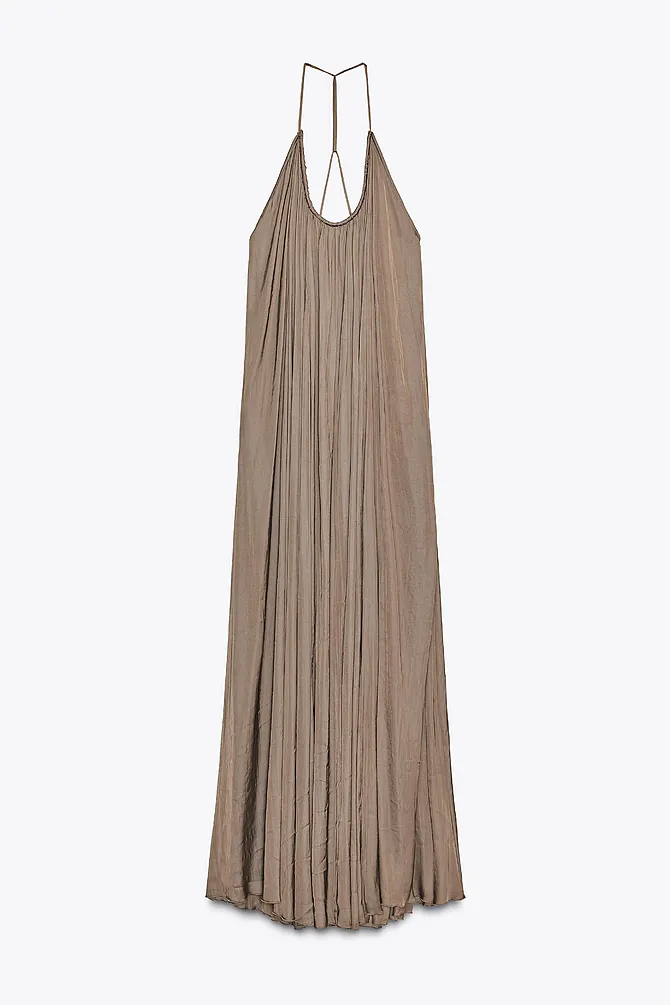 Por último, cerramos esta selección con un auténtico comodín. El vestido holgado largo de Zara (45,95 euros), confeccionado en tejido satinado con efecto arrugado, es de esos que puedes usar en múltiples situaciones sin esfuerzo. Su escote redondo, tirantes finos y bajo asimétrico crean una silueta fluida, elegante y estilizada. En color visón, es una prenda que no pasa desapercibida. Algunos asesores de moda y expertos del sector señalan que si apuestas por un vestido satinado, estarás apostando por una versión top del estilo veraniego.