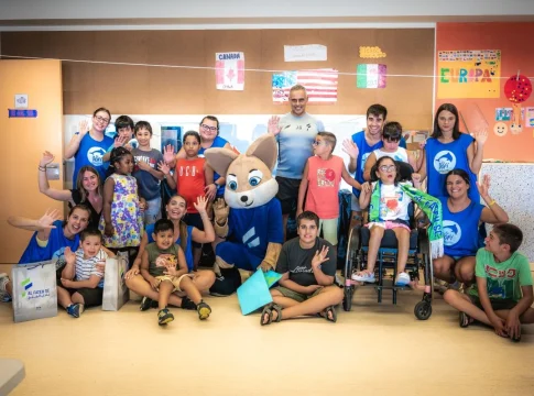 La visita contó con una notable interacción tanto por parte de los estudiantes como del personal del centro, especialmente gracias a la participación de la mascota del club, Thaalob, que también forma parte de la concentración del club en Girona y aportó alegría y diversión a los estudiantes durante la visita.