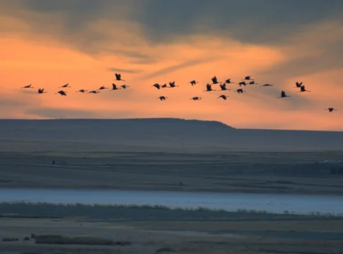 Cuando piensas que La Laguna de Gallocanta ya no puede sorprenderte más, el cielo se llena de vida y sonido. Cada año, este humedal se convierte en el lugar de reunión de miles de grullas procedentes del norte de Europa; este paraíso de las aves es el punto de invernada más importante para la grulla común en toda Europa, congregando a más de cien mil ejemplares. Un acontecimiento que transforma por completo el paisaje.