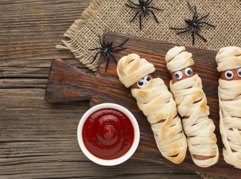 Cuando las salchichas momia llegan a la mesa, la atención cambia de foco: los ojos de todos se posan sobre ellas, y las conversaciones se llenan de exclamaciones. Cada plato de Halloween es también una puesta en escena, y estas pequeñas momias son las protagonistas sin esfuerzo. Brillan por sí solas, sin necesidad de luces ni filtros.
