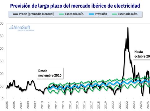 Gracias a esta combinación de técnicas, AleaSoft ha desarrollado modelos que integran el comportamiento probabilístico de los mercados y su naturaleza estocástica, adaptándose a distintas escalas temporales. Esta aproximación ha permitido que las previsiones de largo plazo mantengan coherencia y estabilidad incluso en periodos de alta volatilidad.