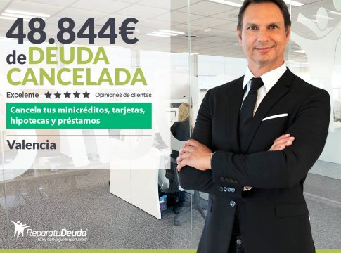 Repara tu Deuda Abogados, despacho de abogados líder en España en la Ley de Segunda Oportunidad, ha conseguido la cancelación de 48.844 euros de deuda en Valencia. Se trata de dos nuevos casos gestionados satisfactoriamente por el despacho.