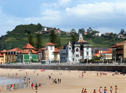 Ribadesella no se entiende sin sus playas, que añaden un punto más relajado a tanta emoción paisajística. La más conocida es la playa de Santa Marina, un amplio arenal urbano de arena fina y dorada que se abre al Cantábrico y que está enmarcado por un elegante paseo marítimo con casas señoriales. Es perfecta para pasear al amanecer, correr junto a las olas o simplemente tumbarse a escuchar el mar sin alejarse del pueblo.