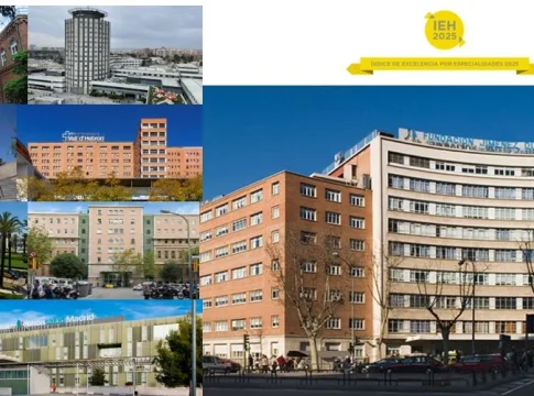 El Hospital Universitario Fundación Jiménez Díaz se posiciona como uno de los grandes protagonistas del IEH 2025, al liderar especialidades como Ginecología, Cirugía General, Neumología, Neurología, Oncología Médica y Urgencias. Le siguen hospitales históricos del sistema sanitario español como el Hospital Universitario La Paz, a la cabeza en Traumatología y Cirugía Ortopédica, así como en Reumatología; el Hospital Universitario Gregorio Marañón en Psiquiatría; o el Hospital Universitario Vall d’Hebron, que de nuevo lidera Aparato Digestivo.