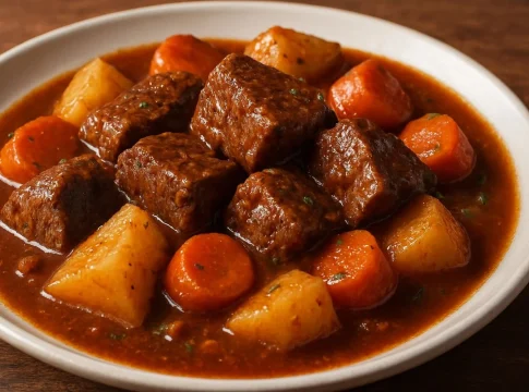 Recalentar el estofado de ternera requiere también de delicadeza, hacerlo a fuego muy suave para no romper las patatas ni deshacer la carne en exceso. Y aunque te mueras de hambre, el acompañamiento de un buen vino tinto con cuerpo es casi obligatorio para limpiar la grasa y la potencia del plato en cada bocado. Sírvelo bien caliente, con una barra de pan artesano cerca, y prepárate para ver cómo tus invitados rebañan el plato en un silencio casi religioso.