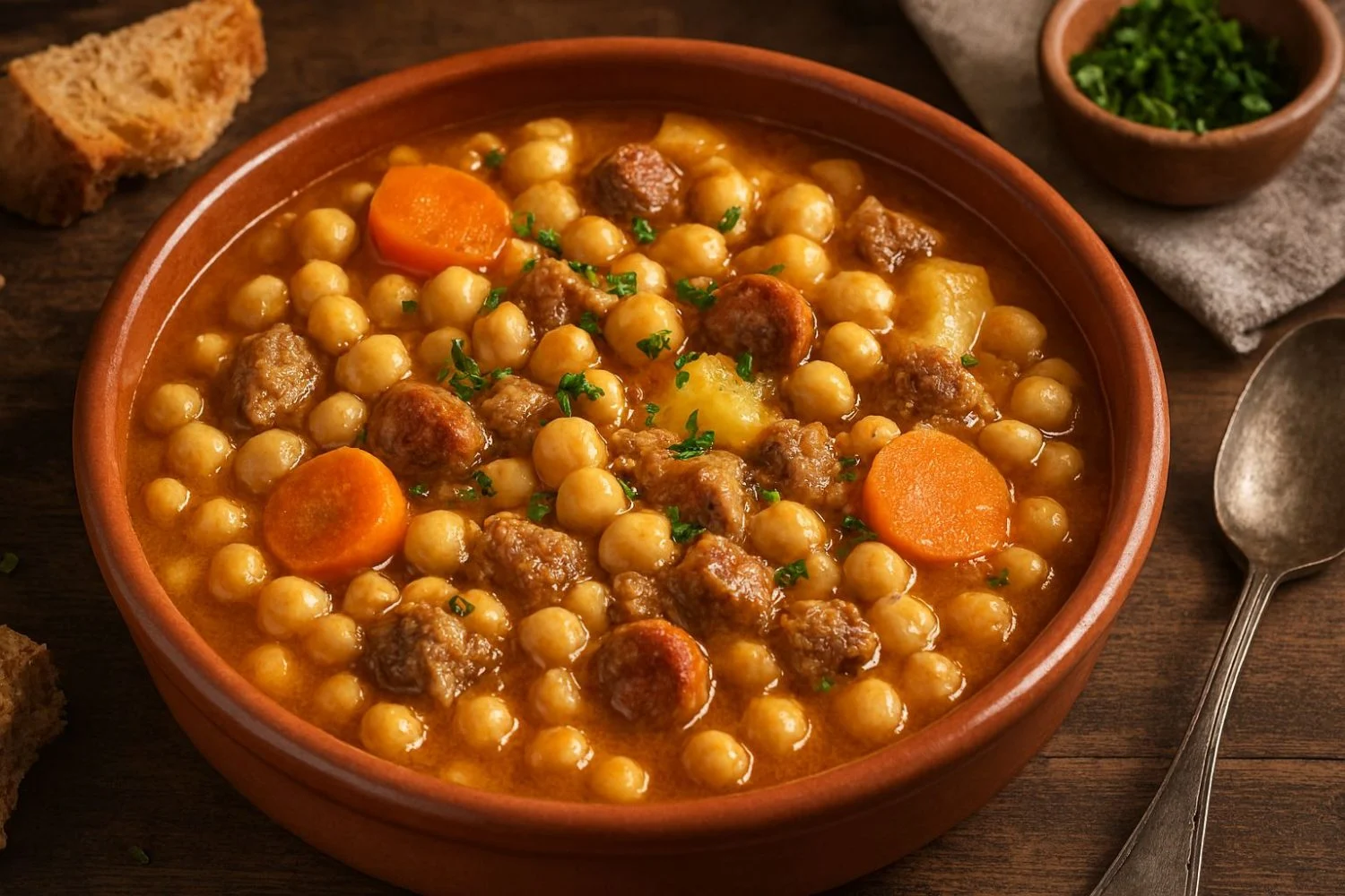 Para que el guiso pase de ser «comida de batalla» a un plato que la familia pida repetir, los acompañamientos y texturas finales juegan un papel determinante. Si tienes niños en casa, verás que añadir huevo duro picado en el último momento cambia la percepción del plato, aportando cremosidad y un extra de proteínas que lo hace más atractivo visualmente. También unos dados de pan tostado o «picatostes» caseros pueden aportar ese crujiente necesario que rompe la monotonía de la legumbre y hace la experiencia mucho más divertida al paladar.