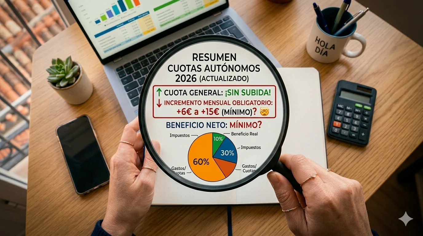 El único cambio confirmado afecta al Mecanismo de Equidad Intergeneracional, la cotización adicional que se creó para reforzar el Fondo de Reserva de las pensiones. En 2025 era del 0,8% sobre la base de cotización; en 2026 sube al 0,9%. En euros, eso supone entre 6 y 15 euros más al mes según el tramo en el que estés. No es un importe que vaya a cambiar la viabilidad de ningún negocio, pero es dinero real que conviene tener en cuenta en la planificación financiera del año. La Seguridad Social tiene un simulador en su portal para calcular el impacto exacto según tu base de cotización.