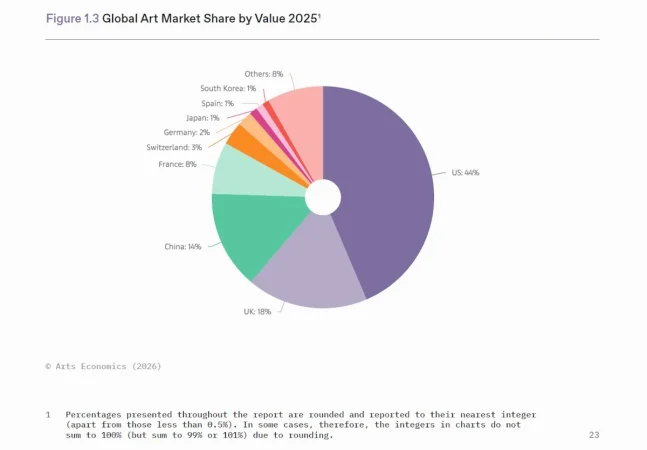 Esta es una de las conclusiones del The Art Basel and UBS Art Market Report 2026 que acaba de publicarse. Otras ideas clave que arroja el informe sobre el mercado del arte mundial fueron: