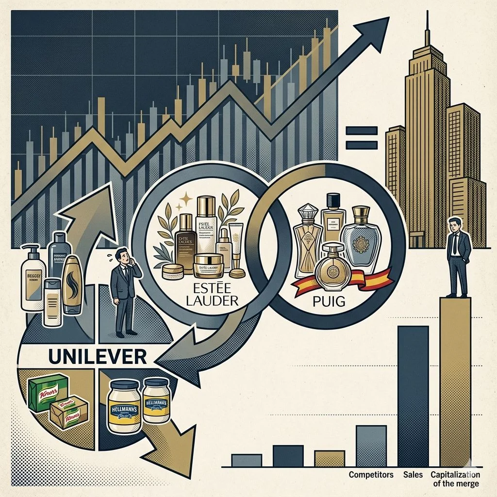 La multinacional de alimentos y belleza Unilever hizo oficial hace unos días su interés por deshacerse de su categoría de alimentación y potenciar su negocio de belleza con una posible adquisición de Estée Lauder sobre la mesa. Si bien esta última no estaría por la labor y está buscando a Puig para hacer un gran conglomerado.