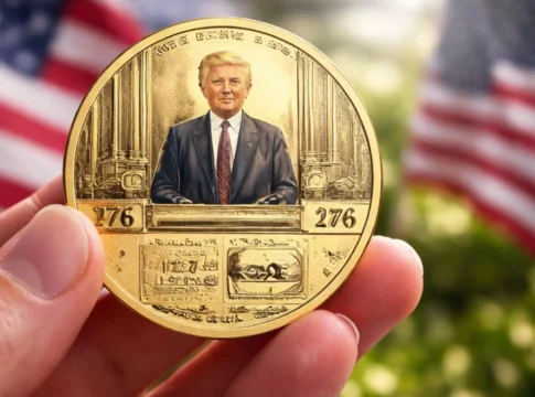 La moneda muestra a Trump en el Despacho Oval. No es casual. Ese espacio representa el centro de decisiones del país, el lugar donde todo pasa. Es casi como congelar un momento de poder en metal.