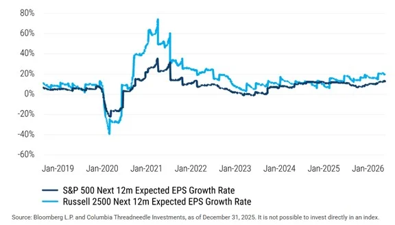 Las estimaciones de crecimiento del BPA de small caps superan claramente a las de large caps de cara a 2026