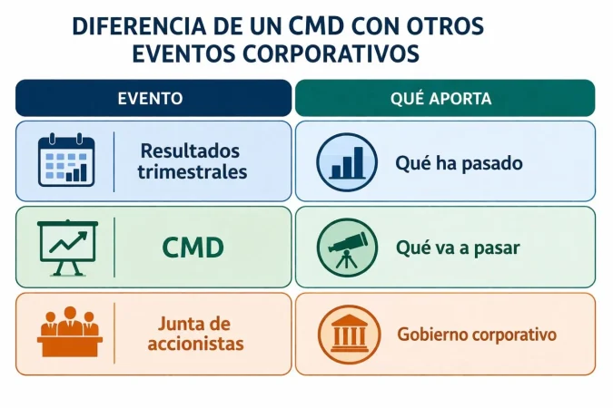 A grandes rasgos, un CMD puede mover mucho la cotización de un valor porque cambia las expectativas futuras, introduce nuevos objetivos y revela información que no sale en resultados trimestrales. Como idea clave para los inversores, un CMD no trata del pasado, sino de futuro.