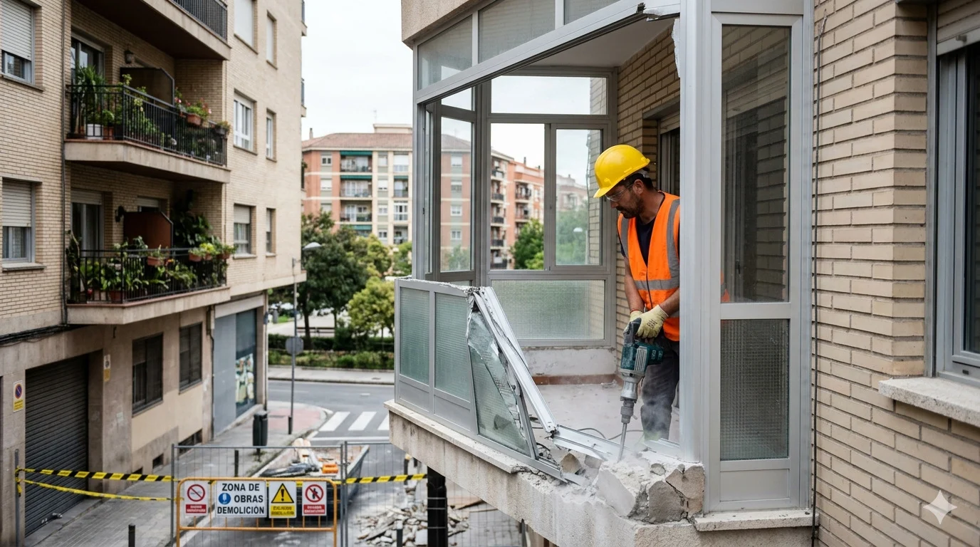El riesgo de lanzarse a la aventura de cerrar un balcón «por la vía de los hechos» no es solo administrativo, sino profundamente económico. Cuando un juzgado ordena la demolición de un cerramiento ilegal, no hay vuelta atrás. El propietario no solo pierde la inversión inicial de la obra (que puede oscilar entre los 3.000 y los 12.000 euros dependiendo de calidades), sino que debe sufragar íntegramente los costes de la demolición y la reposición de la fachada a su estado original.