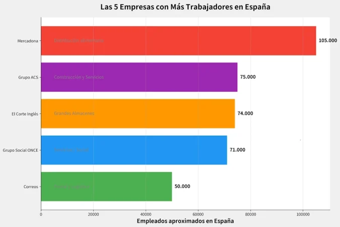 Conviene recordar que el sector público (Administraciones del Estado, comunidades autónomas y ayuntamientos) es el mayor “empleador” de España en conjunto, con cerca de tres millones de empleados públicos (superando los 2,9 millones en datos recientes). Incluye sanidad, educación, Correos, etc. No se trata de una sola empresa, pero supera con creces a cualquier privada.