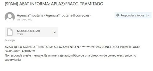 Fallos ortográficos, ausencia de acentos o frases mal estructuradas siguen estando presentes, algo que contrasta con campañas más sofisticadas vistas en años anteriores. Sin embargo, el contexto de la declaración de la renta juega a favor de los atacantes. La urgencia percibida y el miedo a posibles incidencias fiscales hacen que muchos usuarios prioricen la rapidez frente a la verificación.
