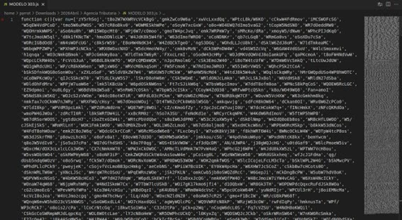 Al abrirlo, el usuario no accede a información sobre su declaración de la renta, sino que activa un script en JavaScript. Este código se encuentra ofuscado, una técnica habitual que busca dificultar su análisis y evitar su detección por herramientas de seguridad básicas.