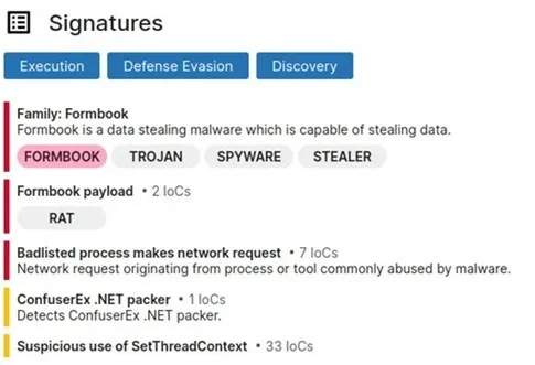 El objetivo final de esta cadena de infección es la instalación de Formbook, un conocido malware especializado en el robo de información. Este tipo de amenaza se centra en extraer credenciales almacenadas en navegadores, clientes de correo y otras aplicaciones de uso habitual.