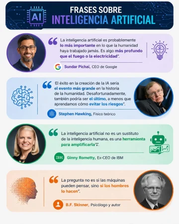 Pasamos mucho tiempo hablando de tecnología y de Inteligencia Artificial. Para que no parezca que no estás conectado, aquí tienes una selección de frases célebres sobre inteligencia artificial y tecnología, junto con sus autores: