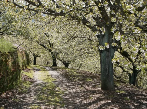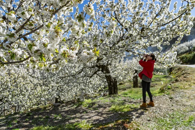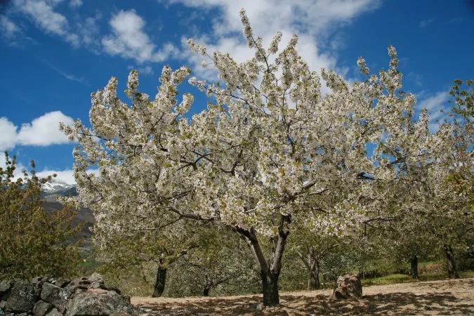 La floración suele durar alrededor de diez días y, dependiendo del clima, tiene lugar entre finales de marzo y principios de abril. Lo interesante es que no todos los cerezos florecen al mismo tiempo. Primero lo hacen los de las zonas más bajas, y poco a poco la floración va ascendiendo por las montañas. Esto permite al visitante disfrutar del espectáculo durante más tiempo si recorre diferentes puntos del valle.