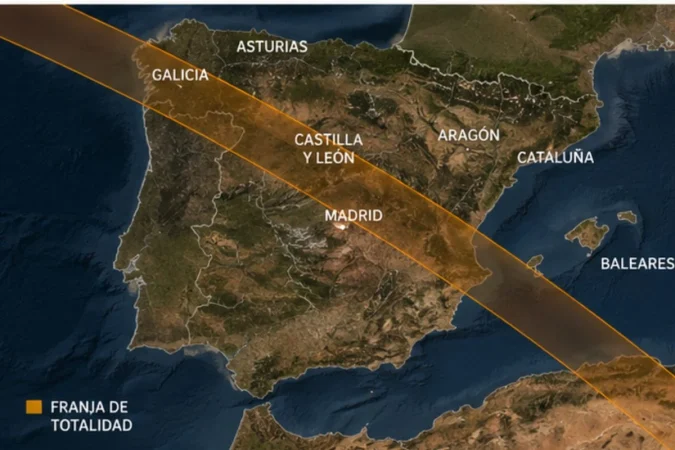 No toda España lo va a vivir igual. La franja de totalidad, esa en la que el eclipse se ve en todo su esplendor, cruzará zonas como Galicia, Asturias, Castilla y León, Aragón o Baleares. Lugares que, de repente, se convierten en pequeños escenarios privilegiados.