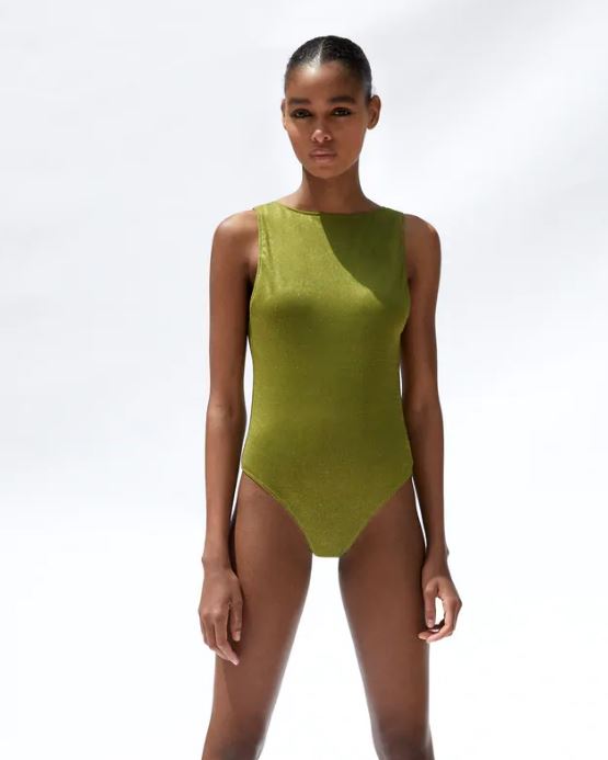 Este bañador efecto brillo quiere ser tu acompañante para ofrecerte comodidad e impacto en una misma pieza. El tercer punto es su precio, está a un coto de 22,95 euros, y es original de Zara. Se trata de un bañador de cuello redondo y con escote en la espalda, su copa es extraíble, y bien con detalles de tejido combinado que hacen un efecto de brillo.