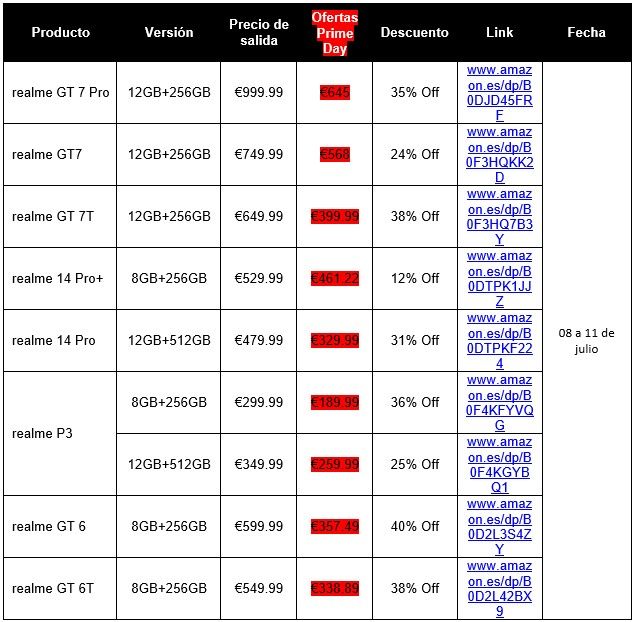 Como reconocimiento al apoyo de los usuarios, realme lanza grandes descuentos y sorpresas durante el Prime Day, con rebajas de hasta el 40 % en algunos de sus modelos más destacados.