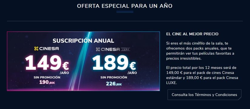 Entre ellos, es importante saber que la suscripción no abarca todos los cines de España. Por el momento, sólo se encuentra disponible en varias salas de Madrid (Cinesa Manoteras, Cinesa Las Rozas, Cinesa Nassica, Cinesa LUXE La Moraleja y Cinesa LUXE Oasiz) y Cataluña (Cinesa Diagonal, Cinesa Diagonal Mar, Cinesa Parc Vallès, Cinesa LUXE La Farga y Cinesa LUXE Barnasud). Sin embargo, la compañía pretende ampliar la promoción a más zonas en un futuro próximo.