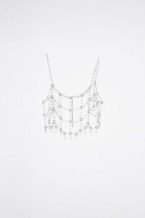 El catálogo de la temporada otoño-invierno de Zara está lleno de artículos sorprendentes con diseños a la última moda, y tendencias que prometen arrasar en los próximos meses. Hoy queremos centrarnos en algunos accesorios pensados para lucir en esas noches especiales en las que queremos brillar y lucir espectaculares. Uno de los más llamativos es el top hecho de cuentas de resina, que es una mezcla de body chain o collar para cuerpo, y un top propiamente dicho. Sin duda, es una pieza hecha para destacar.