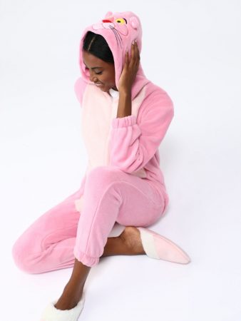 Está claro que por mucho que un pijama no sea un tipo de prenda que se muestra demasiado, eso no quiere decir que en ocasiones no se pueda buscar algo divertido. ¿Quién no ha tenido alguna vez un pijama gracioso? Es lo que sucede con este pijama de una pieza inspirado en la mítica Pantera Rosa. Está cuidado hasta el más mínimo detalle, incluso con la capucha en forma de la cara del personaje.