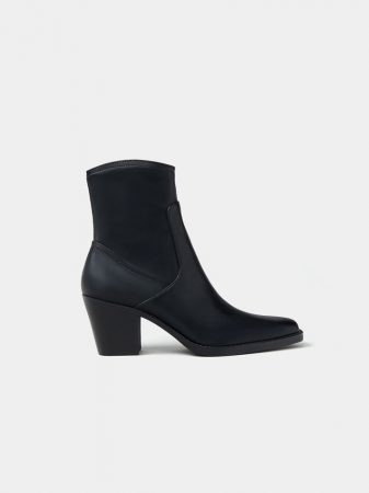 Estos zapatos tipo botín estilo cowboy en color negro de Lefties son uno de los mayores aciertos de la temporada. Su estilo atemporal los convierte en el calzado perfecto para cualquier ocasión y su punta cuadrada les da un toque moderno, original y diferente. Gracias al grosor de su suela y a su tacón de 7 centímetros son un calzado bastante cómodo perfecto para un día en la oficina. Lo mejor de todo es que pueden ser tuyos por solo 29,99 euros.
