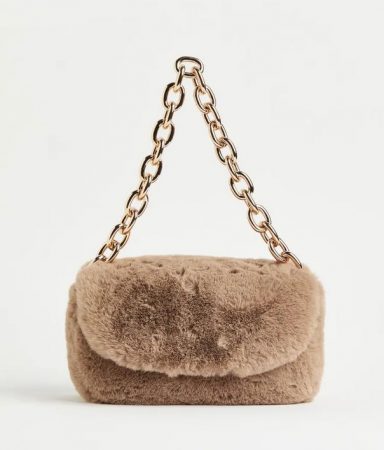 Si por algo se caracteriza la sección de accesorios que de H&M es porque en ella se pueden encontrar bolsos que merecen mucho la pena: tienen diseños muy vanguardistas y alguno de ellos llega incluso hasta marcar tendencias. Pero es cierto que de vez en cuando ponen a la venta alguno muy especial. Y mucho nos tememos que este que ves en la imagen es uno de ellos. Tanto que incluso llega hasta competir con los que venden en Gucci. Destaca por estar hecho a base de pelito, que además de quedar muy bien a nivel estético es muy suave al tacto. Además, tiene una tira de cadena muy chula y es muy barato. Su precio es de tan solo 29’99 euros. A continuación te mostramos más accesorios de este comercio que merecen mucho la pena.