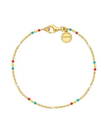 Comenzamos con una propuesta en el departamento de joyería de El Corte Inglés que triunfa por su estilo, belleza y precio. Es una pulsera de la colección Rush con bolas de esmalte de plata y recubierta de oro. Como ves tiene un diseño multicolor y consta de un largo aproximado total 16,5 cm, cierre mosquetón con una posición y que está a la venta en unidades individuales. Su precio actual es de 55 euros y aquí la puedes comprar.