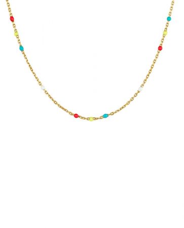 No es de un conjunto pero como ves lo parecería respecto a la pulsera anterior. Esta cadena es perfecta para combinarla con la primer opción que hemos visto, con un diseños similar, no en vano de la misma colección Rush con bolas de esmalte de plata recubierta de oro. Es una cadena con bolitas multicolor esmaltadas un largo aproximado 42 cm y cierre mosquetón con una posición. Otra belleza elegante e ideal para lucir este verano, por tan solo 75 euros. En este enlace lo puedes comprar o regalar.
