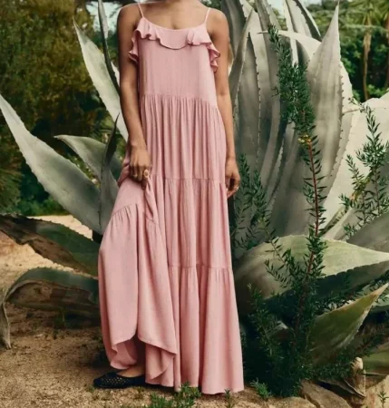- Versatilidad total. Estos vestidos combinan con sandalias, cuñas, zapatillas o incluso botas ligeras. Puedes usarlos para la oficina, eventos casuales, cenas veraniegas o escapadas a la playa.