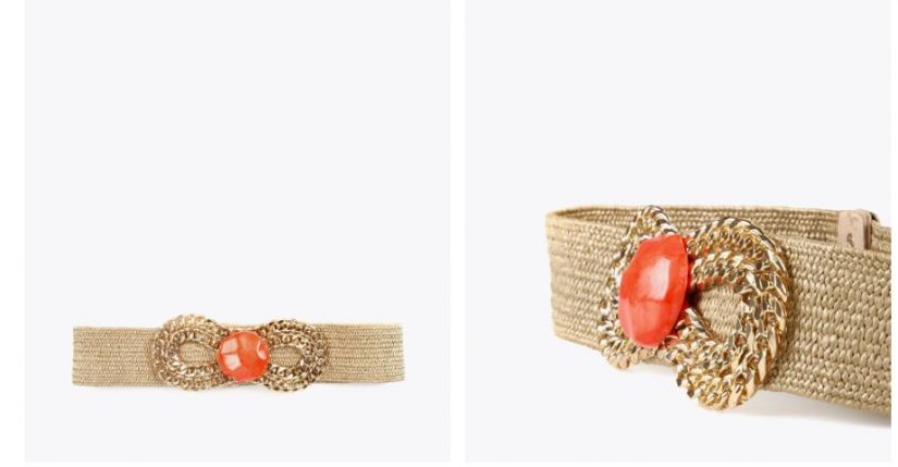 Vamos con una marca que triunfa en El Corte Inglés, también en cinturones, como es Lola Casademunt. Nos quedamos con este modelo de cinturón en color beige y cierre posterior con 2 botones a presión. Es un modelo de lo más primaveral y veraniego, perfecto para esos atuendos campestres y playeros, para vestidos vaporosos o ibicencos, por ejemplos, y combinar con un sombrero del mismo estilo. Su precio es de 39,95 euros y aquí lo tienes en dos clics.