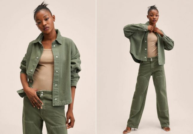Vamos con una prenda más bien para el entretiempo, para esa primavera aún fresca o las noches esas que nada tienen que ver con el calor diurno de abril o mayo. Con esta sobrecamisa irás protegida y a la última. Es vaquera estilo oversize, de lo más casual y moderna, en color kaki. Pertenece a la Colección Committed, en tejido de algodón estilo denim, y mezcla de algodón reciclado. Tiene cuello camisero, manga larga abotonada y cierre de botones a presión. Recuerda que las prendas etiquetadas como Committed son productos que han sido confeccionadas con fibras y/o procesos de producción sostenible, reduciendo así su impacto ambiental. El precio en Mango es de 39,99 euros.