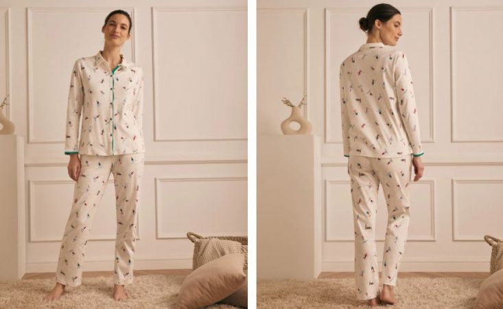 Vamos de algo clásico y liso a un pijama, también de Énfasis, en un estampado fantasía, alegre y original. Se vende en color blanco y sin duda es un gran regalo de cara a estas navidades. Su precio en El Corte Inglés está en 39,99 euros, con lo que aplicando el descuento del 30% se queda muy económico. Es 100% algodón y lo puedes adquirir aquí.