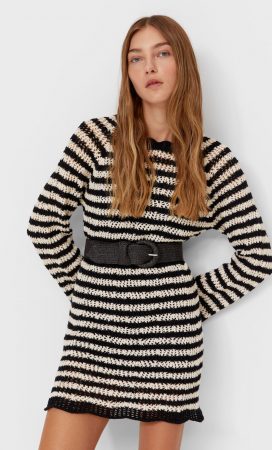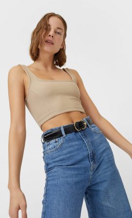 Stradivarius trae este modelo, algo clásico pero llamativo. Este cinturón de hebilla labrada, viene en color negro, elaborado de tal forma que su textura pareciera realmente piel. La hebilla labrada le da un toque único de elegancia y lo hace mucho más atractivo. Puedes usarlo con cualquier pieza de vestir, pero se verá más atractivos en unos Jean o en pantalones vaqueros y por qué no en un buen short, donde luzcas tus atractivas piernas. Lo conseguirás en cualquiera de sus tiendas por tan solo 7.99 euros.