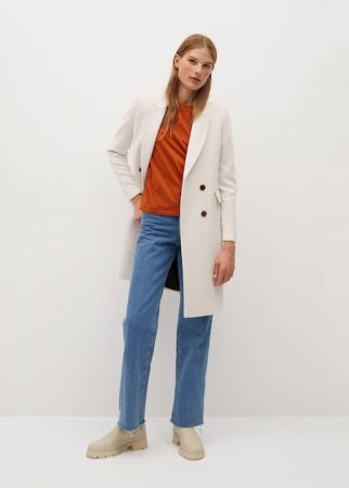 Aunque a veces nos fastidie tener que abrigarnos la realidad es que los abrigos son prendas de gran elegancia. Además podemos encontrar una enorme variedad de cortes, diseños, colores y materiales. Del catálogo de Mango para este otoño hemos seleccionado este de diseño recto y altura media, con bonitas solapas en pico y un bonito cierre de doble botonadura. Tiene dos bolsillos de solapa laterales y abertura en la parte de detrás. La composición es 70% poliéster, 30% lana, por lo que es bastante calentito. Llévalo abierto en otoño y abotonado en invierno, combinado con una bufanda y un gorro que abriguen bien.