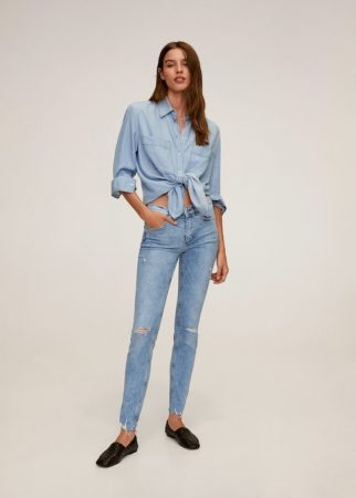 La tendencia actual son las cazadoras denim oversize, súper cómodas y con la ventaja de que nos podemos poner un jersey grueso por debajo. Esta de Mango tiene un lavado medio desgastado y con rotos decorativos que le dan a la prenda un aspecto de cazadora con historia. Hombros caídos, cuello clásico, botones delanteros, y bolsillos laterales y de solapa, completan este modelo, fabricado en algodón reciclado. Te la puedes llevar a casa por 29,99 €.